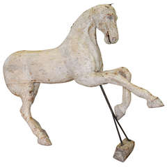 Fabulous carved wooden horse from Stockholm, Sweden. Beautiful face and stance. Scraped down to it's original white washed color.