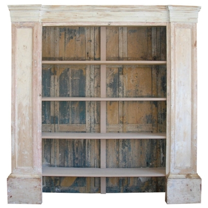 Beautiful Italian bookcase from Luca, Italy scraped down to the original pale cream, pink and grey color. New shelving.