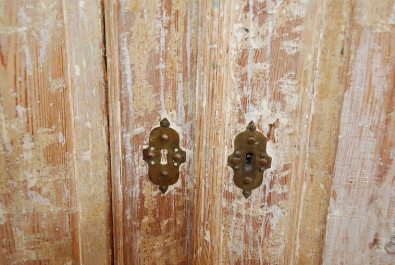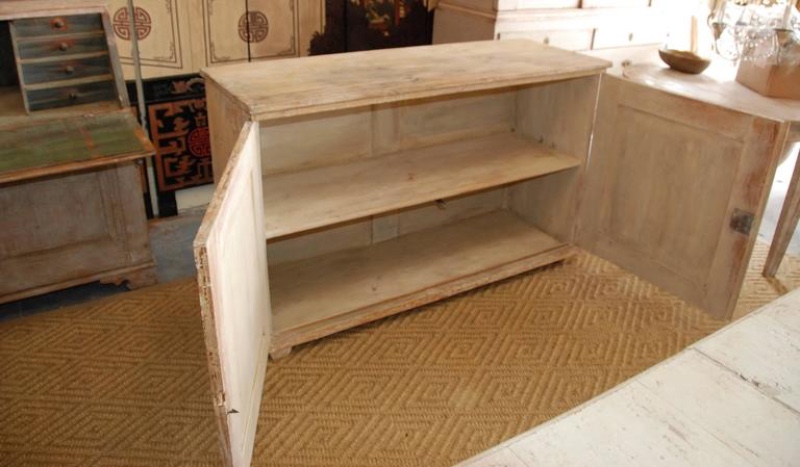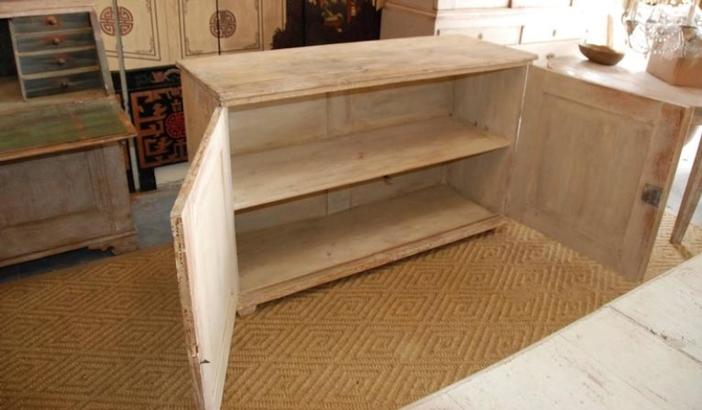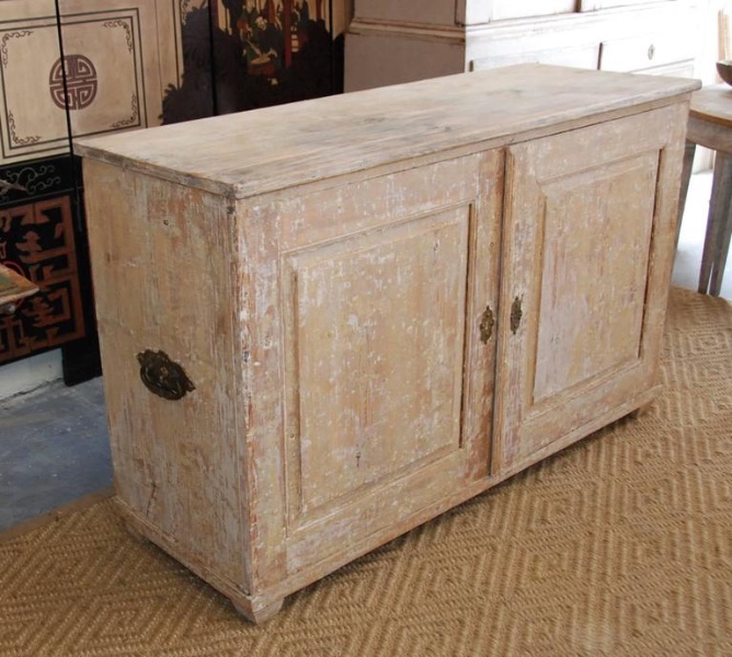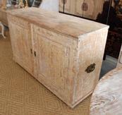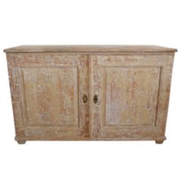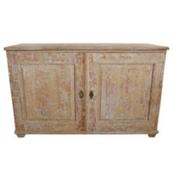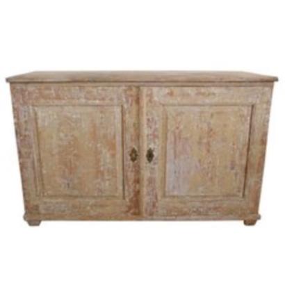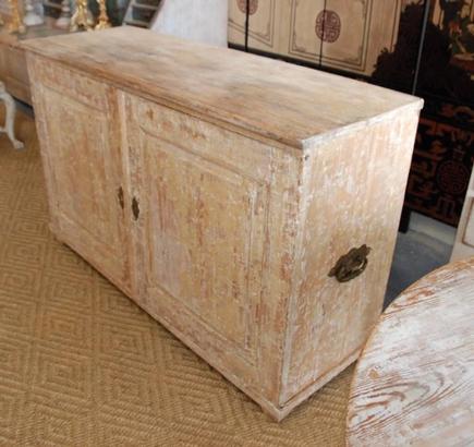 19th Century Swedish Sideboard with lovely carved paneled doors. Scraped down to original ochre color with hints of white. Unique handles on sides. 39.5" H x 57" W x 20"D. $6500