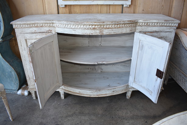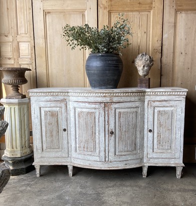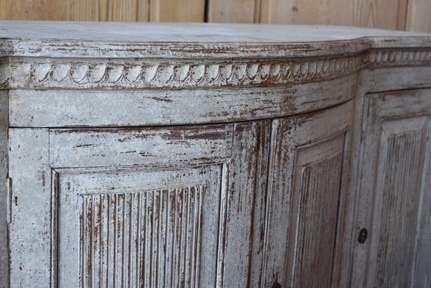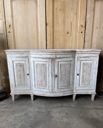 Beautiful 19th Century Swedish Sideboard with reeded paneled doors. Lovely Swedish white with hints of blue grey color...Fantastic size!