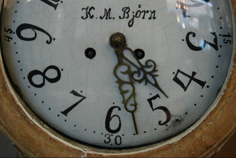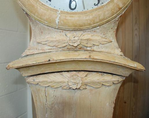Beautiful 18th Century Swedish mora clock from Varmland Sweden. Scraped down to original creme color. Circa 1780