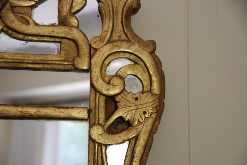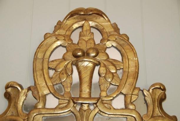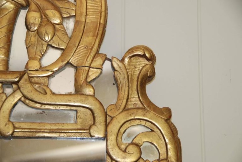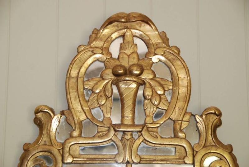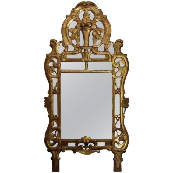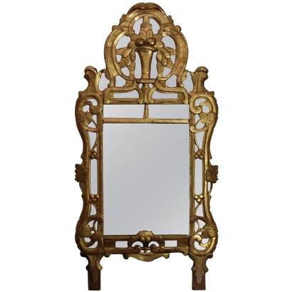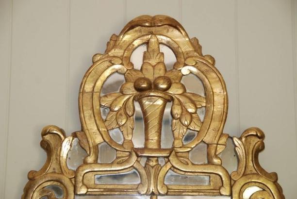 Beautifully carved Louis XVI style French Provençal mirror. All fully restored, retaining the wonderful aged patina. Original mercury glass. Provence, France 45" H x 22" W x 1.5" D $4200
