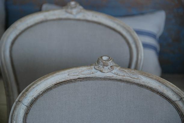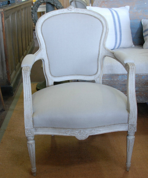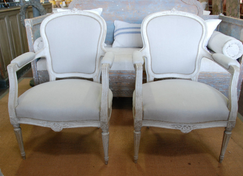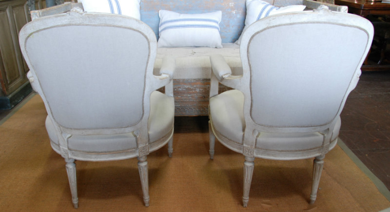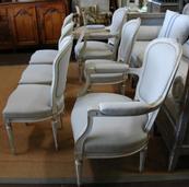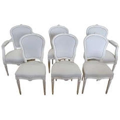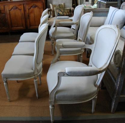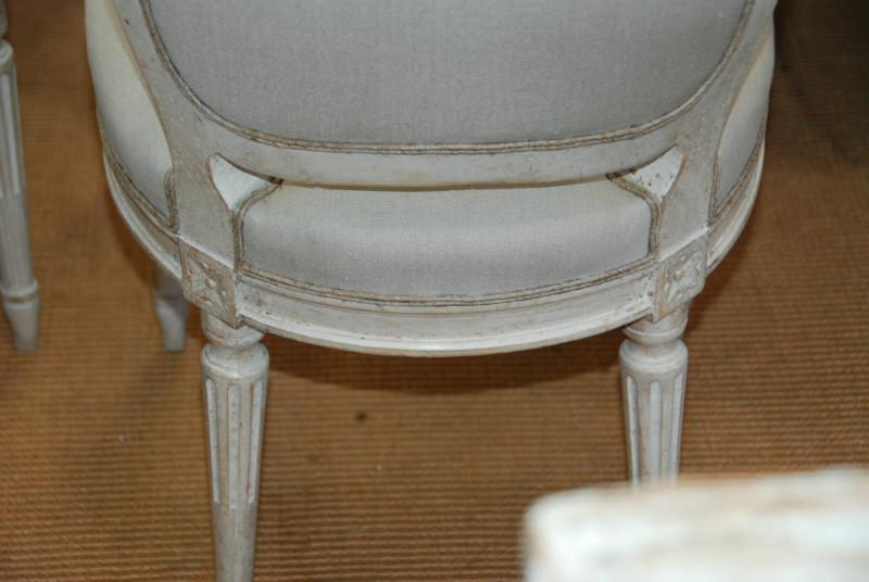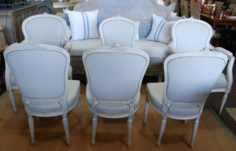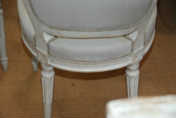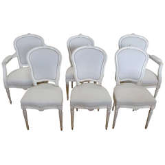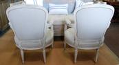 Lovely set of Swedish Rococo Style Chairs. Two Bergere with 4 side chairs. c1900 All newly restored and upholstered in Swedish linen. Bergeres 25" W x 22" D