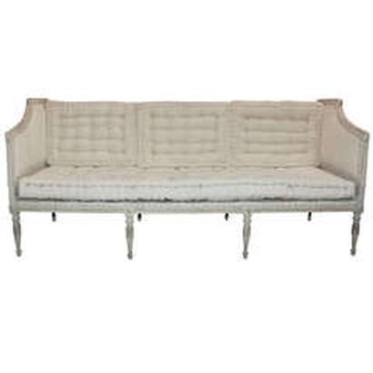 Elegant gustavian sofa from Stockholm Sweden scraped down to the original lovely soft creamy white color.