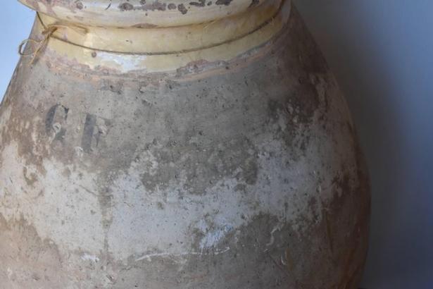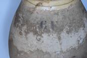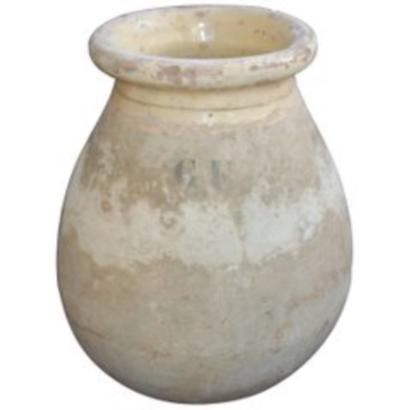 Beautiful 19th Century French Biot Jarre. Intials CF on one side. Great aged patina with lovely soft french cream yellow color. Solid no cracks or distinguishing chips. 35" H x 27" W. $3600