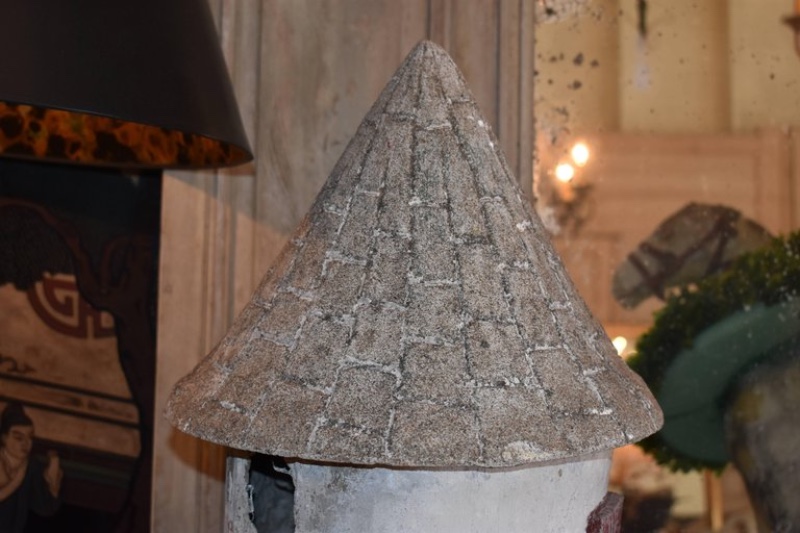 Whimsical vintage French cement birdhouse. Lovely addition to a garden setting. 28" H x 14" D $850