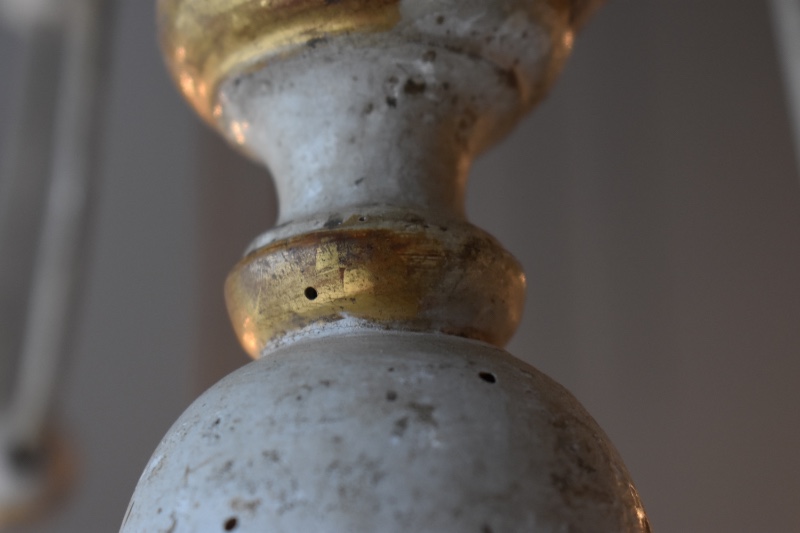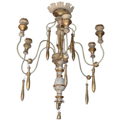 Italian wood and crystal chandelier made with 18th century chuch stick fragments. Great aged patina. Not yet wired. 30" H x 24" D $3200