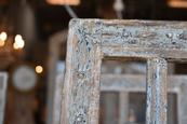 Set of 6 Swedish Period Gustavian Ladder back dining chairs hand scraped to the original pale green/blue color. Lovely carving on the legs, back and apron. Tapered legs with center stretcher. Upholstered in antique Swedish Hemp.      c 1780.   $5500