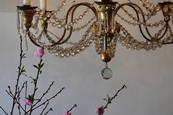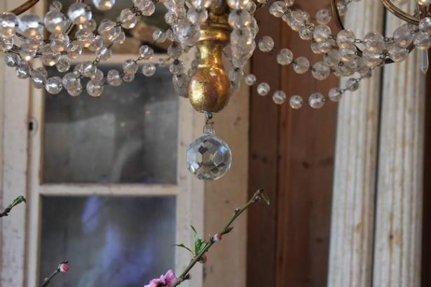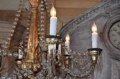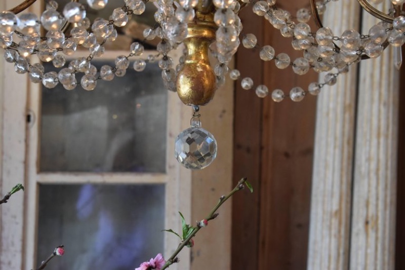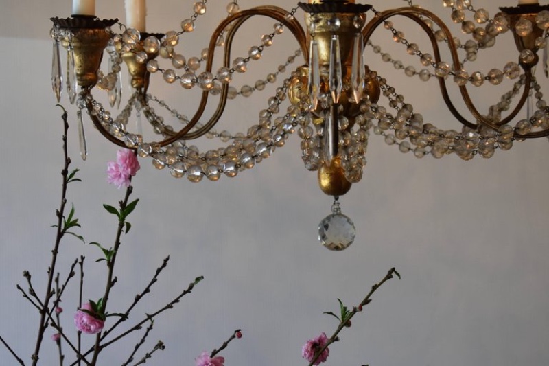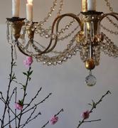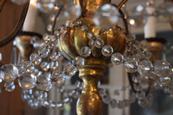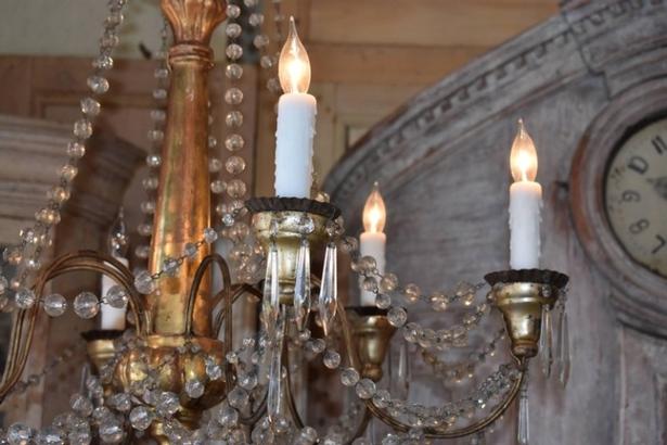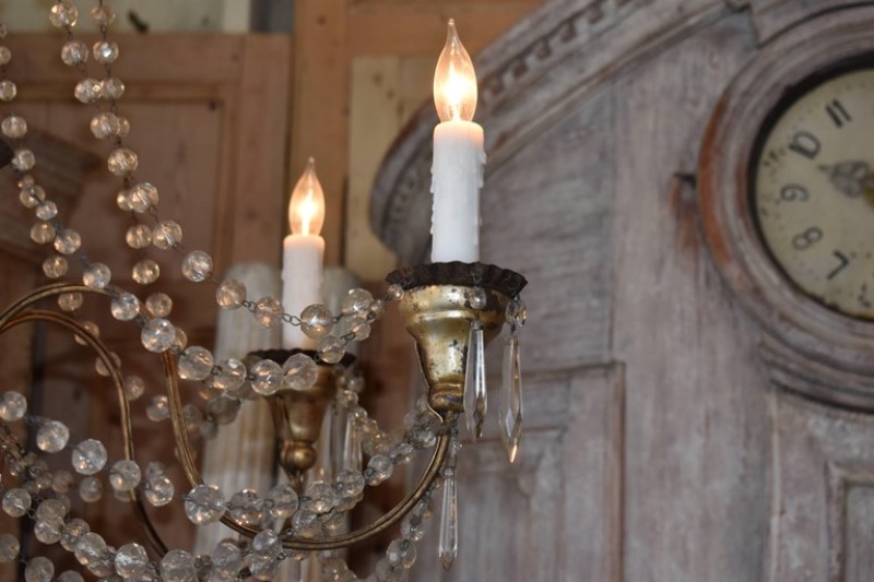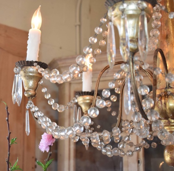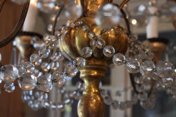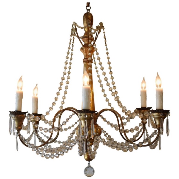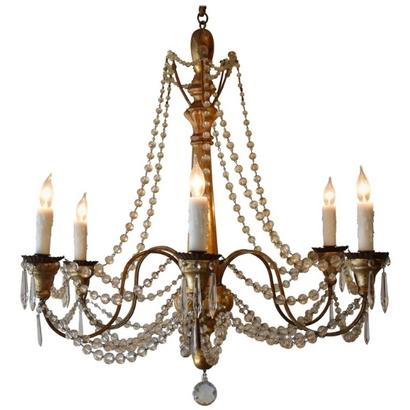 Elegant 19th century Italian gilded wood and crystal chandelier. Beautiful aged patina on the wood. All newly restored and wired. Height of 31" is to the top of the chandelier. Very nice....31" H x 29" W x 29" D $4200