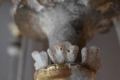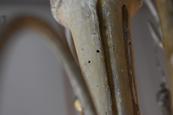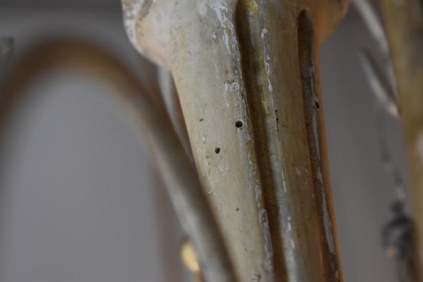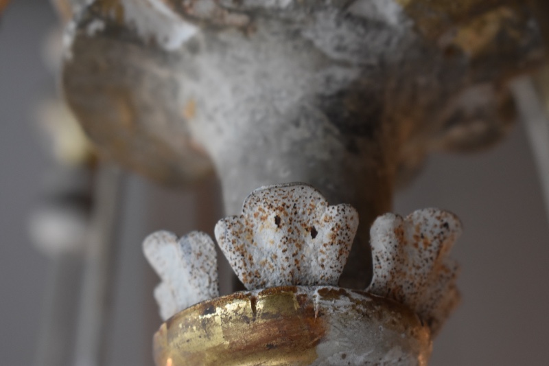 Italian wood and crystal chandelier made with 18th century chuch stick fragments. Great aged patina. Not yet wired. 30" H x 24" D $3200